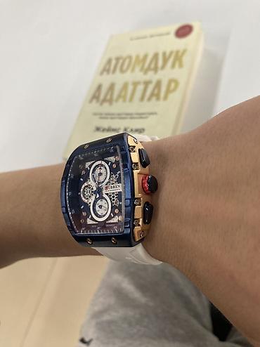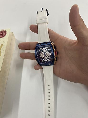 Яркая комбинация белого ремешка и синего корпуса с золотистыми вставками, сложный скелетон-дизайн и функциональный хронограф делают модель заметной и удобной на каждый день.