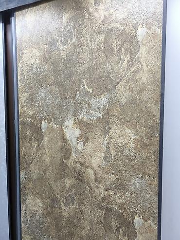 - Особенности: крупноформатный лист для минимального количества стыков; универсальная спокойная палитра, легко сочетается с деревом, бетоном и металлом; визуально добавляет фактуры и тепла пространству