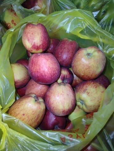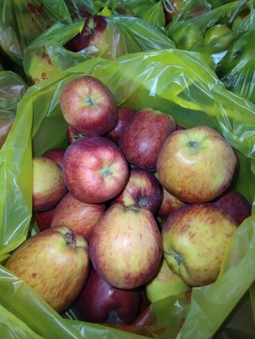 Яблоки в пакетах по 10 кг , 1 кг по 75 сом - Сорт: смесь красных и жёлто‑зеленых осенних яблок мелко‑ и среднеплодных. - Упаковка: фасованные прозрачные пакеты с ручками, плотно завязанные. На ф...