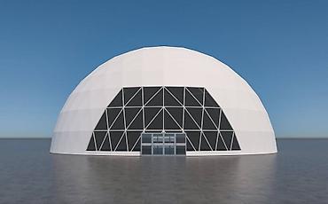 - Преимущества: быстрое возведение, устойчивость к ветровым нагрузкам, эффектный внешний вид, естественное освещение, большой полезный объём без внутренних опор