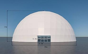 Параметры: Диаметр 30 метров, 705 кв метр внутри, высота центра 14 метров.