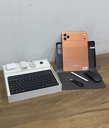 Планшетный комплект с клавиатурой и аксессуарами - Планшет с экраном около 10" (диагональ визуально ~10.1"), тонкие рамки, фронтальная камера по центру верхней кромки в горизонтальной ориентации. ...