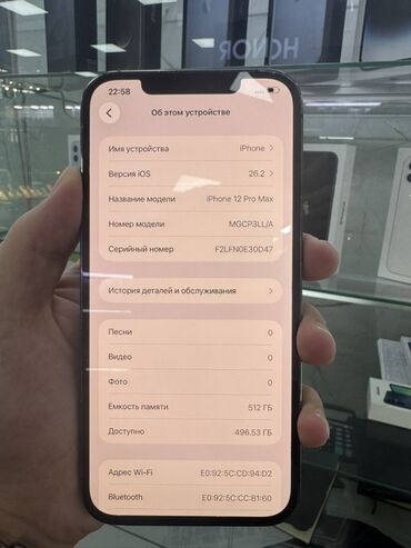- Память: 512 ГБ (доступно около 496,53 ГБ)