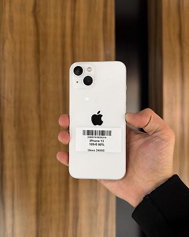IPhone 13, Б/у, 128 ГБ, Белый, Защитное стекло, Чехол, 80 %