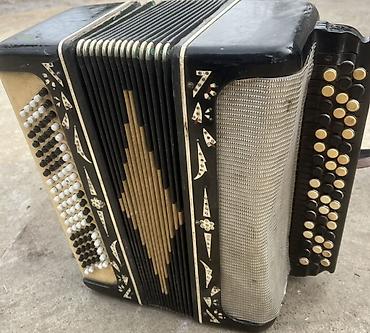 Баян кнопочный, двухрядный правый мануал и басовый блок с аккомпанементом.