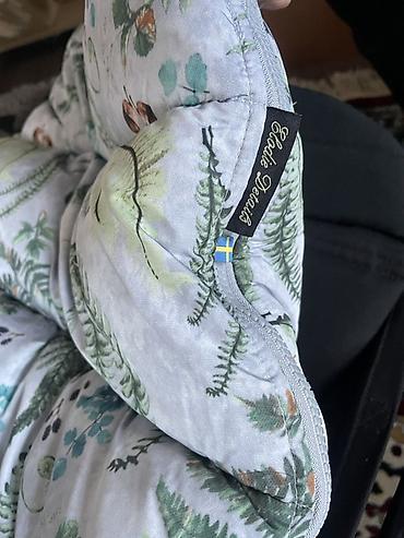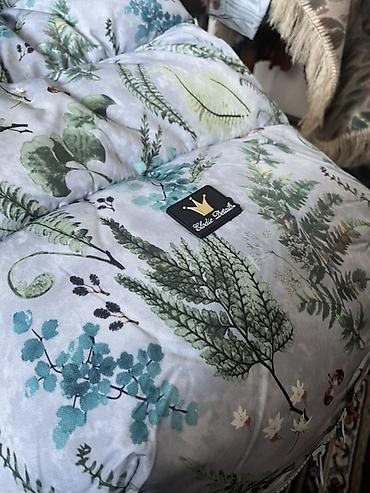 - Верх: плотная ткань с растительным принтом (папоротники, веточки), водо- и ветроотталкивающая.