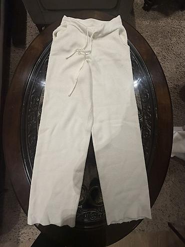 - Брюки из той же пряжи, прямого кроя, на талии шнурок-кулиска, боковые карманы.