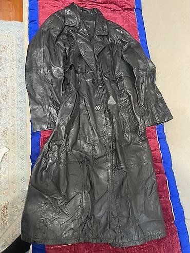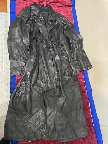 Длинный двубортный тренч из черной эко-кожи. Характеристики: - Материал: плотная гладкая эко‑кожа с подкладкой. - Цвет: черный. - Посадка: прямой силуэт, длина миди/макси. - Застежка: двубортная н...