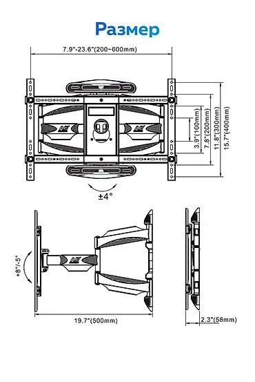 Кронштейны для телевизора. - Настенные модели: фиксированные, наклонные и поворотно-выдвижные. - Поддержка диагоналей от 32" до 55". - Максимальная нагрузка до 50 кг. - Совместимость со стандартом...