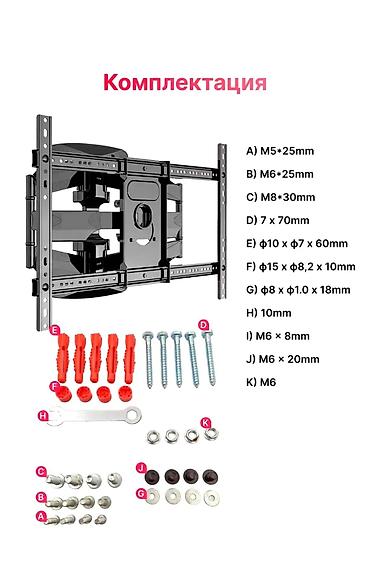 Профессиональная установка телевизоров на стену в г. Бишкек. - Монтаж на кронштейны любого типа: фиксированные, наклонные, поворотные. - Подбор и установка кронштейна под диагональ и вес ТВ. - Точ...