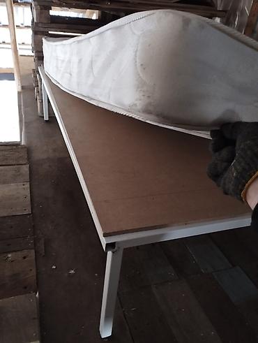 - Основание: металлический каркас на четырёх опорах, сверху — жёсткая плита-настил для равномерной поддержки матраса.