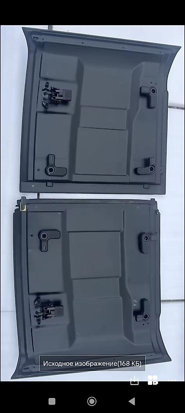 Люк в сборе для автомобиля. - Комплект: рамка люка, сдвижная панель/крышка, направляющие, механизм сдвига. - Конструкция металлическая, панель обшита жестким листом (фанера/композит). - По пер...