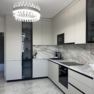 Кухонные гарнитуры на заказ - Современные линейные и угловые решения под потолок - Фасады без ручек (push-to-open/скрытые профили), ровные линии, минимализм - Материалы на выбор: ЛДСП/МДФ, матовые...