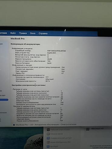 - Батарея: 177 циклов, максимальная ёмкость 90%