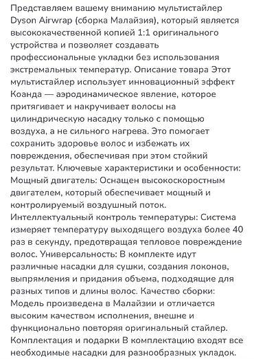 Стайлер Dyson новый. Копия оригинала премиум качества. Сборка - Малайзия 🇲🇾 дает такой же эффект как и оригинал! Не нужно переплачивать за бренд.