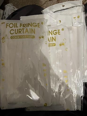 - Фольгированные шторы‑занавесы (Foil Fringe Curtain) белые для фотозоны.
