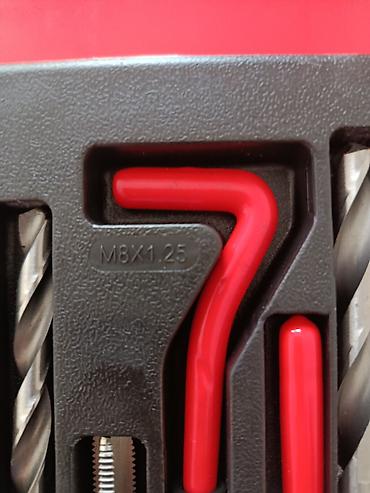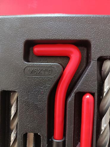 - Для каждого размера в наборе: сверло нужного диаметра, метчик, оправка-установщик с Т‑образной ручкой, инструмент для отлома хвостовика (tang break), спиральные вставки из нержавеющей стали (в индивидуальных пакетах).