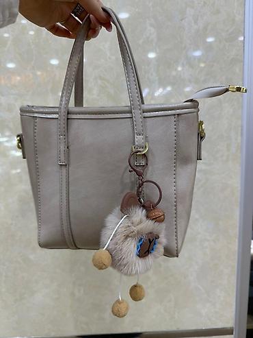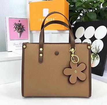 3) Структурированная бежево-коричневая сумка с брелоком-цветком 1300с