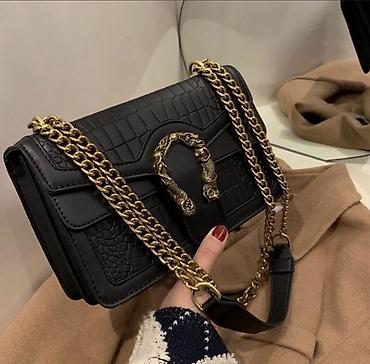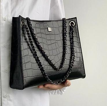 4) Черная сумка под кроко с цепочными ручками 1100с