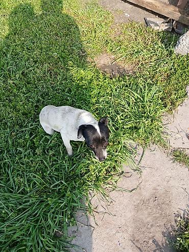 Щенок Алобаи с необстрижженными ушами гладкой шерстью белого цвета с рыже‑пегими отметинами на голове и ушей. Компактное, крепкое телосложение, широкие лапы, выразительные тёмные глаза. Уравнове...