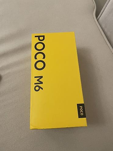 POCO M6 — смартфон в черном цвете с комплектной фирменной коробкой.