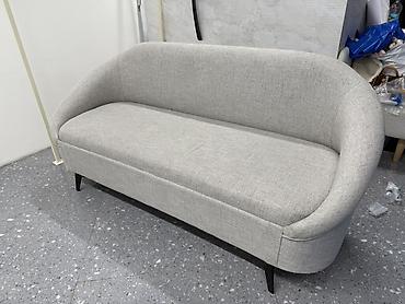 Компактный прямой диван со строгими геометричными линиями. - Посадочные места: 3. - Обивка: ткань серого цвета, мягкая на ощупь, практичная в уходе. - Каркас: прямые подлокотники средней высоты, с...