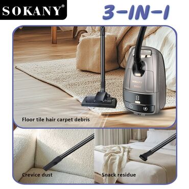 «Продаётся мощный пылесос SOKANY SK-13045 — 4500 Вт, контейнер ~3.5 л, длинный кабель 5 м, телескопическая труба и универсальные насадки для пола, ковров, мебели и авто. Отличный выбор для уборки д...