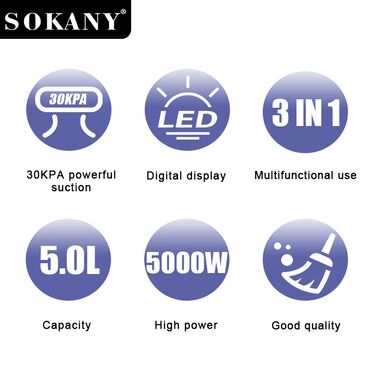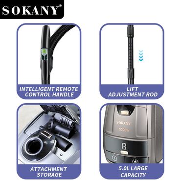 Пылесос SOKANY SK-13060 — 5000 Вт, мощное всасывание ≥ 30 kPa, вместительный контейнер 5 л.