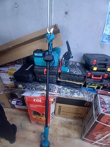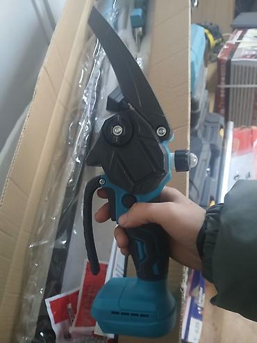 - Электрический секатор на телескопической штанге для обрезки ветвей на высоте без стремянки; компактная рукоять позволяет работать и как ручным секатором.