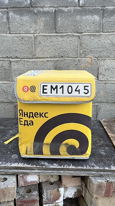 Термо-рюкзак курьерский Яндекс Go для доставки еды. - Формат: жёсткая изотермическая коробка-рюкзак. - Цвет и брендинг: жёлтый с логотипами «Яндекс Go» и надписью «Тамак жеткирүү». - Конструкция: ...