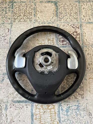 Руль BMW M с подрулевыми лепестками Описание: - Оригинальный спортивный руль BMW серии M - Материал: гладкая кожа, трехцветная M‑строчка по ободу - Встроенные подрулевые переключатели передач (+/–...