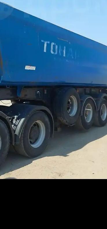 Самосвальный полуприцеп Тонар (синего цвета), трехосный.