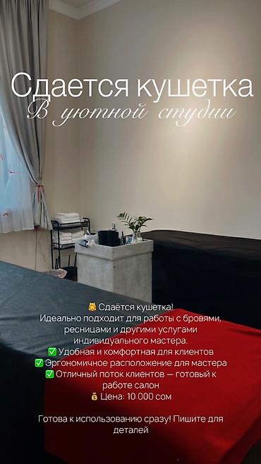 Сдается кушетка в уютном кабинете ✨ Подходит для ламинирования ресниц и бровей Чисто, комфортно, спокойная атмосфера 📍Центр БЕТА СТОРЕС1 ЧУЙ ИСАНОВА 📲