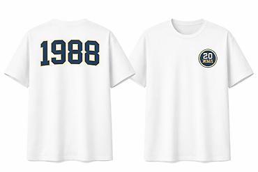 Примеры на фото: футболки и худи с крупными логотипами SULI PRINT, неоновые принты, а также футболка с номером «1988» на спине и круглым значком «20 жыл» на груди.