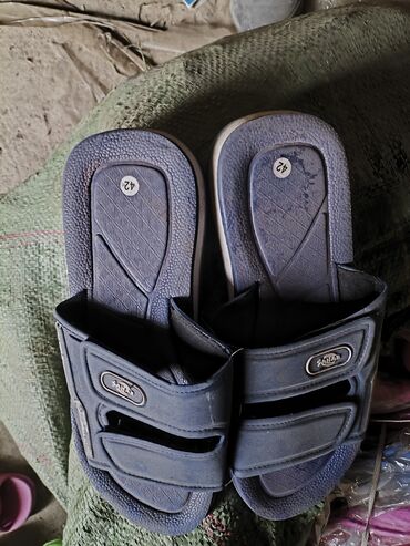 - Размер на фото: 42 (указан стикером на стельке синих шлёпанцев).