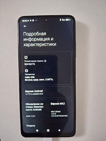 - ПО: Android 13, MIUI Global 14.0.5; патч безопасности от 01.12.2023