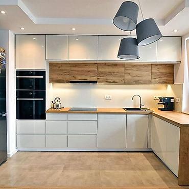 Современный кухонный гарнитур в минималистичном стиле, выполненный в