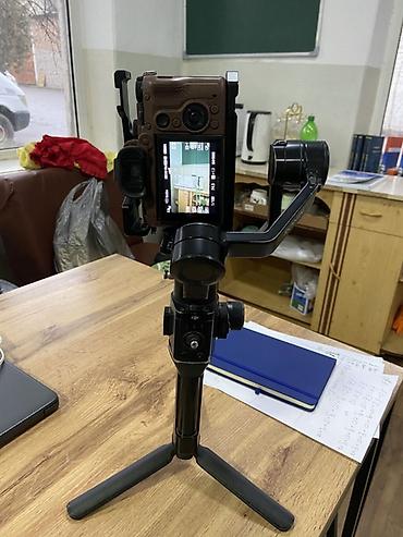 Подходит для видеосъемки влогов, мероприятий, путешествий и стабилизации при ходьбе/беге. Комплект на фото включает стабилизатор Ronin‑SC с мини-штативом и площадкой. Камера и объектив показаны для иллюстрации совместимости.