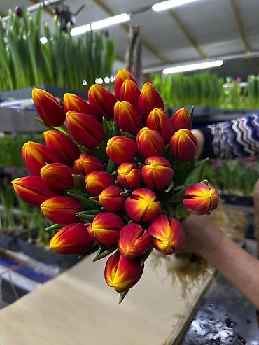Тюльпаны — свежесрезанные, прямые поставки из теплиц. В розницу 130 сом за цветок. Оптом от 30 штук 125 сом за штуку. От 50 штук 120 сом за штуку. Сотовый Ватсап - Ассортимент цветов: жёлтые, к...
