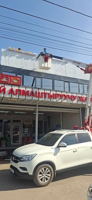 Услуга автовышки (мини-автовышка на базе Kia) - Высотные работы с люлькой: монтаж/демонтаж рекламных конструкций и вывесок, фасадные работы, остекление, электромонтаж на высоте, мойка и обслуживан...