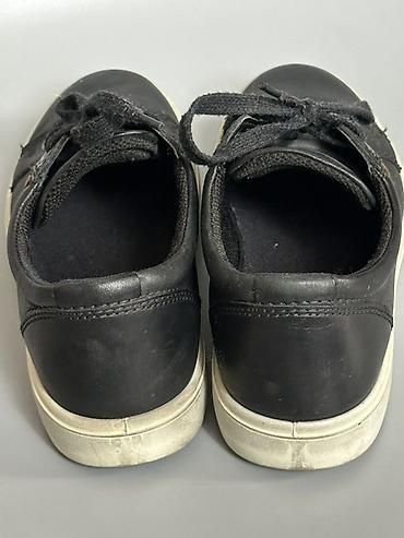 Мужские кеды eoco - Материал верха: гладкая черная кожа. - Подошва: контрастная серая, эластичная, амортизирующая. - Застежка: шнуровка с усиленными петлями. - Подкладка: мягкая, с петлей на пятке...