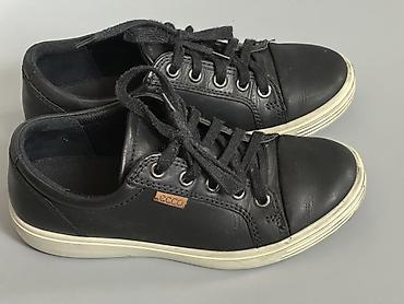 Кроссовки ECCO Soft (модель с логотипом ECCO на боковой части). - Цвет: тёмно‑серый верх, белая подошва. - Верх: натуральная кожа с лёгкой фактурой. - Шнуровка: классическая, тёмные плоские шнурки...