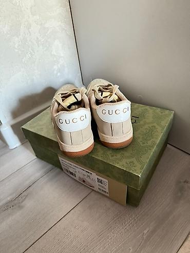 - Детали: шнуровка, металлический овальный шильдик с логотипом GG на союзке, нашивка GUCCI на язычке, крупная надпись GUCCI на пятке, повторяющийся монограмный принт GG на носке и корпусе.