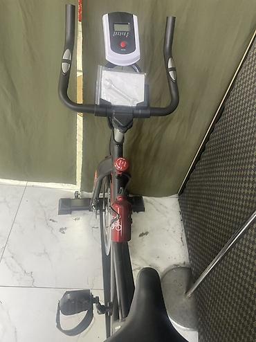 Подходит для кардио, интервальных тренировок и имитации велозаездов в помещении. Компактный, удобен для регулярных домашних занятий. Цвет: чёрный с красными акцентами. Маркировка на раме: Spinning / Sport / Movement.