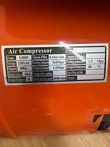 Портативный воздушный компрессор Tian Bo 50 л с оранжевым корпусом оснащенный двигателем мощностью 5,0 лошадиных сил. Компрессор имеет объем потока 0,18 м³/мин и рабочее давление 0,8 МПа, что делает его подходящим для различных задач, требующих сжатого воздуха. Корпус выполнен из металла что обеспечивает долговечность и надежность. Удобная ручка для переноски и компактный дизайн облегчают транспортировку и хранение устройства. В комплекте могут быть дополнительные аксессуары для подключения. Этот компрессор является надежным решением для использования в мастерских, гаражах или на строительных площадках.