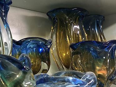 Набор декоративных сосудов из стекла с мозаичным покрытием.