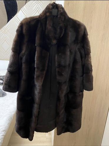 Шуба из норки, темно‑шоколадный цвет. Новая. Характеристики: - Материал верха: 100% норка (ярлык “Fabric content: 100% mink”). - Подкладка: 100% полиэстер. - Размер по ярлыку: 52. - Классическая ...