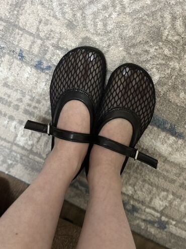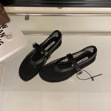 Дизайн: классическая форма Mary Jane с ремешком через подъём и металлической пряжкой. Верх — сетчатый ажур с крупной ячейкой, окантовка и ремешок из гладкого материала под кожу. Внутренняя стелька темная, мягкая. Носок округлый, подошва гибкая.