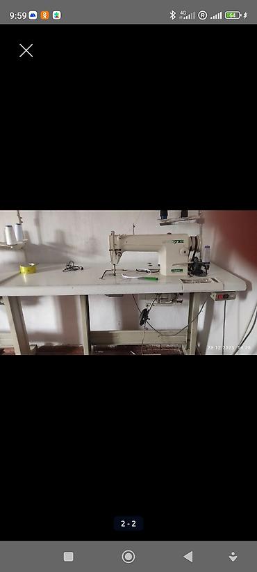 1) Прямострочная швейная машина ZOJE (на столе с педалью и нитедержателем).