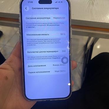 - Аккумулятор: максимальная ёмкость 99%, состояние «нормальное»